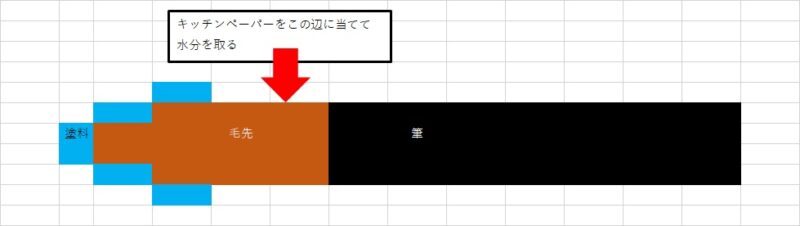 キッチンペーパーの角で水分を取ります。