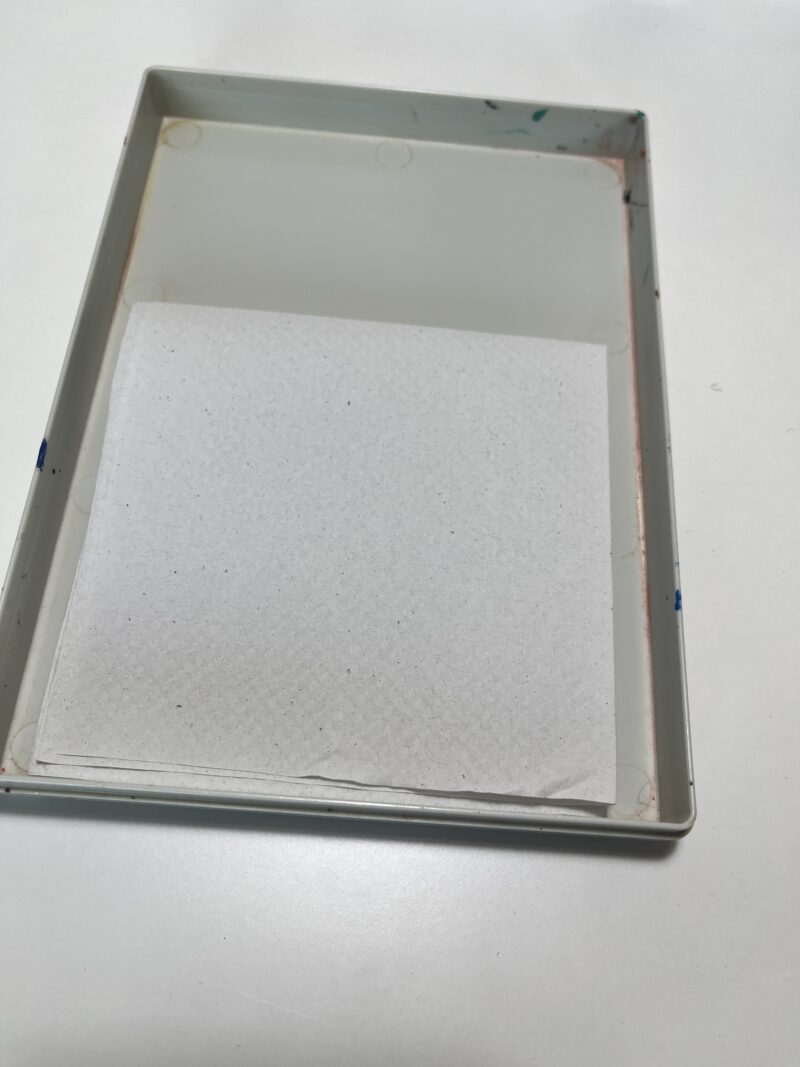 1.パレットにペーパータオルを敷き水を入れる